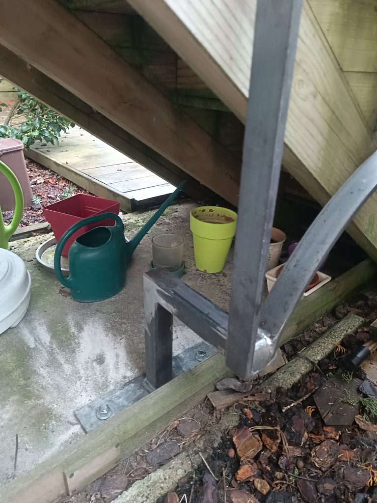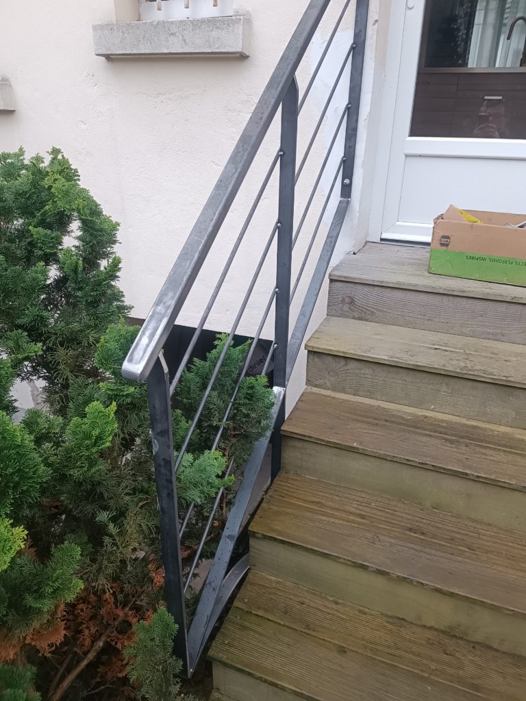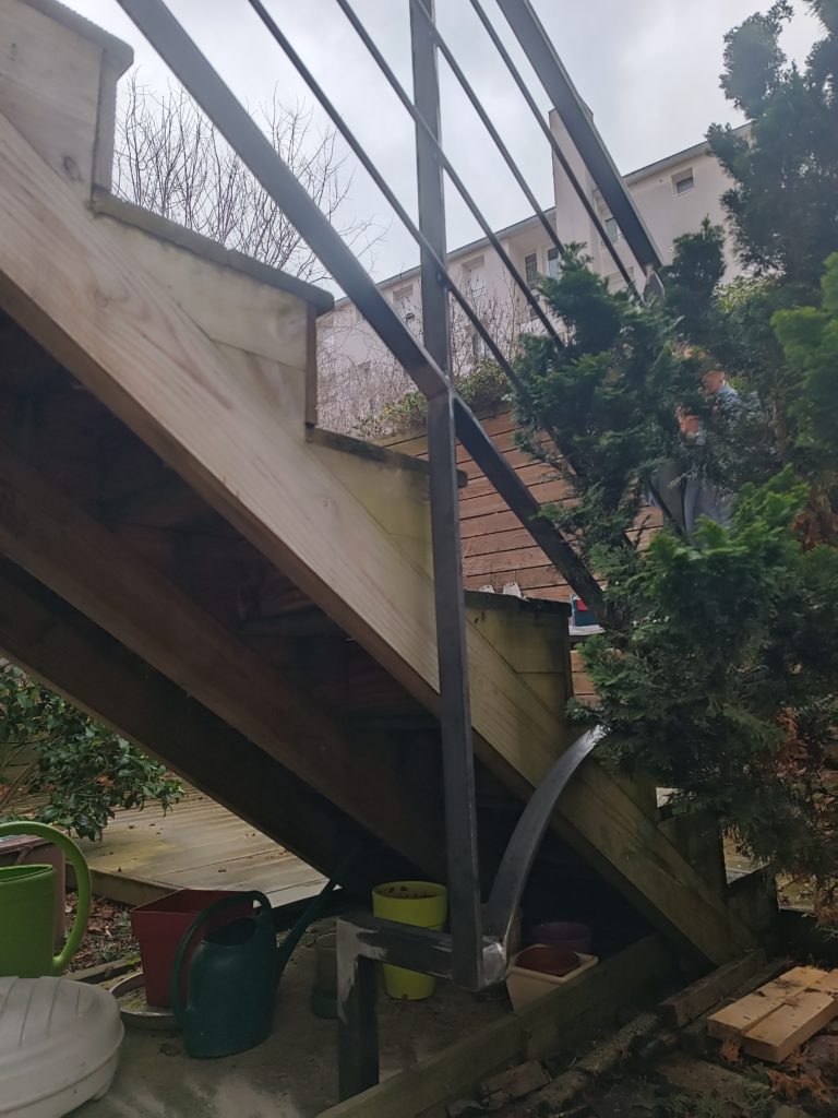 Voici deux éléments à fabriquer pour la même maison : une arche de soutien pour végétation au dessus d’un portillon, et une rampe d’escalier extérieur.
