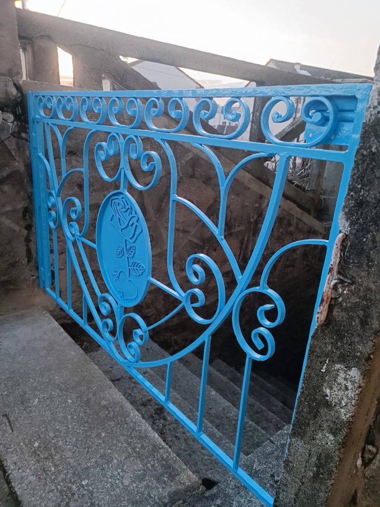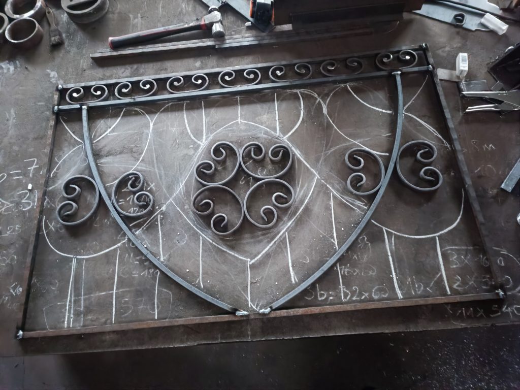 J’ai récupéré des restes de volutes de mes commandes, un peu de chutes de barres, une récup de découpe laser, on met en forme à la volée, et hop pour la maison, plus deux couches de peinture.